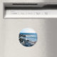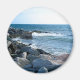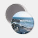 Den här magneten har ett vackert foto av Atlanten med vågar som slår mot en bergig strand.