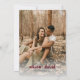Med en unik och elegant beröring till ert tillkännagivande i bröllop spara datum visar denna japansk-inspirerade design en vattenfärg gren på ett behändigt sätt placerad framför ett fängslande måne. Konstruktionens enkelhet förbättras av en lodrät på den lämnat sidan, som sömlöst sträcker sig mot kortets övre del, och med användan av bröllop-datumet skapar en visuellt tilltalande effekt. Gren och måne framställs på ett vackert sätt i tonerna terracotta och brunt rött, vilket tillför värme och charm till den totala estetiska bilden. Att komplettera designen är en subtil vattenfärg som tvättar bakgrunden och ger konstnärligt ljus. På baksidan av kortet hittar du ett uppriktigt foto av paret som fyller i det här spännande bröllop-meddelandet.
