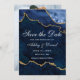 Den moderna Elegantens vattenfärgsblått och Guld marble Agate Geode - Spara datumkortet - Foto bakåt
