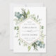 I elegant bröllop sparas datuminbjudan med färgade vattenfärgen eukalyptus, grönt löv, blommor med faux guld geometric hexagon ram. Om du vill ha en mer avancerad anpassning av den här designen klickar du på länken Anpassa ytterligare. Matchande objekt är också tillgängliga.