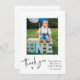 Enkel, minimalistiskt tackkort för barnkalas. Perfekt för att tacka gästerna för att de kom till ditt barns födelsedagsfest. Designen har ett foto, meddelande och typsnittsmanus ''tack'' i trendig bokstavsstil.