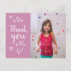 Personligt tacksamhetskort för barn, komplett med handskrivna vita hjärtan, anpassad bakgrundsfärg och fotomall så att du kan lägga till ett foto av ditt barn.