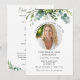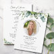 Personalisera detta enkla och eleganta program med namnet, fotot och meddelandet om din avlidne närstående. Hedra och fira livet för din älskade med denna moderna eukalyptus blomsterbegravningsprogrammall. Lätt att anpassa text och foto. Våra hjärtliga kondoleanser och böner är med dig under denna mycket svåra tid.