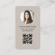 Modern minimal visitkort med en mjuk beige färgpalett med foto och QR-kod för snabb och enkel delning av kontaktinformation. Utformad för att hjälpa kunder omedelbart spara dina uppgifter, ansluta på sociala medier eller visa din portfolio. Perfekt för proffs, kreativa och småföretagare som söker en ren, varm och sofistikerad varumärkesprofil. Redigerbar text, foto och QR-kod destination. Rent tryckfärdigt layout.