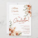 Fira din akademiska milstolpe med stil med vår bohemiska terrakotta-examensinbjudan med utsökta höstblommiga arrangemang och diskreta pampasgräsaccent. De varma färgerna bränt orange och terrakotta frammanar en känsla av rustik elegans och sätter den perfekta tonen för din examensfirande. Varje element i denna inbjudan har noggrant utformats för att återspegla säsongens skönhet och betydelsen av din prestation.