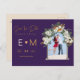 Foto Bröllop Spara datum Lila Blommig Brevkort Vykort