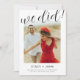 Denna foto bröllopsannons som läser "vi gjorde det" i en kalligrafisk teckensnitt och kan redigeras med dina detaljer, och antingen omedelbart laddas ned eller skrivas ut via Zazzle.