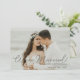Ni är gifta! Grattis! Visa upp ett av era bästa foton medan ni inbjuder era gäster att fira er bröllopsmottagning med denna handskrivna typografi & er fotoinbjudan.