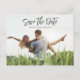 Denna design har spara datum bröllop elegant, stilfullt kalligrafi sött unikt, vintage handskrivet vackert enkelt, modernt traditionellt minimalistiskt minimalt, foto par bild 1 en, vit text förlovning chic trendigt, teal whimiskt script typografi teckensnitt, budgetfoto spara datum, förlovade fullfoto blödande överlägg, modern kalligrafi handskriven script