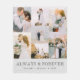 Foto Collage Bröllopsfilt. Denna stilrena och moderna bröllopsfilt har en collage av 7 (4 vertikala och 3 fyrkantiga eller horisontella) bröllopsfoton och texten 'alltid och för evigt' som kan ändras till en annan text om du vill. (Du kan dock behöva minska storleken på texten i designverktyget om din text är längre än 14 tecken.) Anpassa också med era namn och bröllopsår och/eller datum. Bakgrunden är en blekgrå och texten är svart.