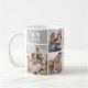 Personlig kaffemugg med klistermönster av 8 bilder och monogram på båda sidor.