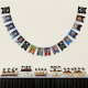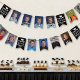 Fira examen med denna personliga fotobanner med 12 foton -- välj ett foto från varje årskurs (första klass till tolfte klass eller studentexamen) eller tolv av dina favoritfoton genom åren och/eller deras studentporträtt. Fyra titel-flaggor är personliga med GRATULERAR och examenstudentens namn och examenår i vitt mot en utbytbar svart bakgrundsfärg så att du kan koordinera med deras skola eller festtema. Ett enkelt och roligt sätt att visa bilder på din examen som en del av dina festsdekorationer. Beställ flera banners för att enkelt visa ännu fler foton.