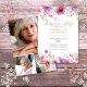 En elegant akvarellblomma personlig firande av liv begravning minnesinbjudan med en 3-foto collage på baksidan. Designad av Thisisnotme©