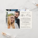 Stilfull och elegant krämfärgad elopement / litet bröllopskort och bröllopsmottagningsinbjudan. Framsidan visar ditt foto och "Lyckliga Alltid Efter-fest" i en blandning av enkel typografi och ett modernt skrivsätt. Anpassa ditt meddelande och din inbjudan och lägg till dina namn i ett signaturliknande skrivsätt. På baksidan lägger du till ytterligare ett foto, dina förnamn och datum för bröllop eller evenemang.