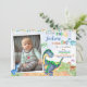 Foto Dinosaur-födelsedagsinbjudan Dino 2-årsdag dino-mite party. Stomp Chomp Growl och Rawr! Den här söta inbjudan för andra födelsedagsfesten med flera roande dinosaurier, ballonger och party-banderoll längst upp. Du kan bara redigera den här mallen som är enkel att använda på menyn Anpassa för att göra den speciell.