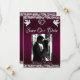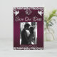 Den här romantiska designen har en elegant lila bakgrund med glitterkanter, platshållare för parets foto, ett diskret silverhjärta och duvor med datum för evenemanget i elegant skrivstil på framsidan. Baksidan har en platshållare för monogram, ytterligare information och plats för din webbplats. Finns även med olika bakgrundsfärger för din bröllopstema. (Glitter är simulerat i bilden). Designad för att samordna med "Two Shall Become One - Hearts, Doves & Glitter" brölloppskollektion. För att ändra detaljer, klicka på « Anpassa ». Ersätt foto med ditt eget. För att flytta texten eller ändra textstorlek, teckensnitt eller färg klickar du på « Klicka för att anpassa ytterligare »