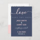 Den här eleganten marin och bröllop spara datum har ett modernt manusmönster i kärlek, som inspirerar till utformningen överst i vit brev med rosa. Under rubriken "Spara datumet" i vitt med extra brev som avstånd till dubblan som en vågrät som ska delas mellan den översta designen och textinformationen. Par namn i lätt /blek rosa i ett kapitaliserat koordinerande teckensnitt gått med med ett vitt tecken och tecken. "are gifta sig!" är i ett koordinerande skriptteckensnitt i vitt, med datum och plats i rosa och vitt, i samma typsnitt som namn. Bakgrunden till framsidan är marinblå, eller en djup blå som koordinerar väl med den vita, och ljusa/blek rosan. Kortets baksida har en koordinerande bakgrund för rosa av blek med vit brev och anger "Formal uppmaning att följa" i samma typografi som "Save the date" framifrån, i vitt. Den översta delen är reserverad för ditt eget foto, perfekt för ditt favoritfoto på förlovningen! Även här kan du lägga till namn, bröllop och bröllop. Den här tvåsidiga besparingen är underbar för ge dina gästalternativ på vilken sida som ska hålla på kylskåpet (foto eller inget foto) och fortfarande se alla viktiga detaljer om bröllop.