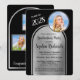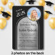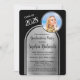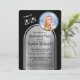 Denna eleganta inbjudan till examensfest har en dubbelbåge med svart text mot en borstad silverbakgrund och ett utrymme för ett foto av hedersgästen på denna speciella tillställning. Baksidan av kortet har plats för ytterligare tre foton. Mycket att anpassa för att passa din egen händelse. Om du har några designfrågor, skicka bara ett chattmeddelande eller ett e-postmeddelande till charmdesignstudio@rcn.com så hjälper vi dig gärna. Kontakta oss också om du vill att bakgrundsfärgen ska ändras till en skolans färg eller en favoritfärg.