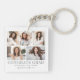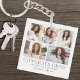 En enkel och elegant boho-inspirerad examensnyckelring med en fem-fotografisk kollage för en personlig touch. Designen visar fem noggrant arrangerade foton, inramade av en ren vit bakgrund med mjuk grå text. "Klass 2026", examenens namn och skola visas i underdrivna, sofistikerade teckensnitt för en raffinerad look.