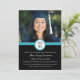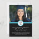 Examen inbjudan anpassad fotokort i ljust blå, svart och vit modern design. Anpassa detta examensfoto kort genom att lägga till ditt examensår, dina egna foton och detaljer om din examensfest.