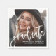 Denna enkla och minimalistiska pappersservett för examensfirande har en ren, modern design som är perfekt för att fira examen. "Graduate" visas i elegant handskriven stil, tillsammans med examenens namn, "Class of 2026" (eller vilket år som helst) och skolans namn i klassiska, lättlästa serif-teckensnitt för en polerad look.