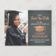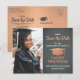Dela de glada nyheterna om en kommande examensfest med skräddarsydda fotogrå och falska kopparfolie save the date postkortinbjudningar. Bilden och texten på denna mall är enkla att anpassa och färgerna kan ändras med Zazzle designverktyg. Anpassa den med examen namn, examensår och andra meddelandedetaljer som du väljer. Designen har en mortar board mössa, elegant modernt kalligrafi, klassisk vintage typografi och ett favoritfoto, till exempel en seniorbild eller en bild från examensceremonin. Observera att koppar är en dämpad orange färg, inte metallisk folie. Dessa stilrena examenskort är ett elegant sätt att dela en speciell dagsfirande med familj och vänner. Grattis till examen!
