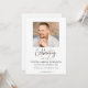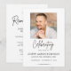 Dela en meningsfull hyllning med denna moderna inbjudan till firande av livsminne. Med en ren och elegant layout och förfinad scripttypografi erbjuder detta anpassningsbara kort ett vackert sätt att inbjuda familj och vänner till en minnesstund eller firande av en minnesgudstjänst. Anpassa med ditt eget foto och evenemangsinformation för att skapa en tidlös och hjärtlig souvenir.