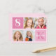 Söt 4-foto fyrkantig födelsedagsinbjudan vykort för en liten flicka. Fira ditt barns födelsedag med 4 söta fotografier av dem på detta personliga vykort med vackra rosa rutor. Lägg till deras namn och ålder.