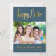 Sprid Påsk bejublar i år med det här elegant Påsk-kortet som har ord "Glad påsk" i ett dekorativt skript i guld mot en mörk blått bakgrund. Anpassa genom att lägga till ditt favoritfoto, din familj namn och ditt namn.