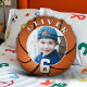 Fotopillow för Basketball Boll Barns födelsedag. Basketbollens födelsedagskudde med ett foto av anpassningsbarna, namn och ålder.