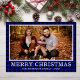 Det här fotojulkortet i fantastisk har ditt favoritfoto, blått och svart buffel, din familj namn, året och ord "God jul" på framsidan i vitt och en matchande blå buffel på baksidan. Teckensnittet är skarpt och rent skapar att kortet ser modernt ut men traditionellt.