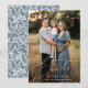 Elegant Påsk-kort med fotot med "Påsk Blessings" i ett vackert, vitt kalligrafiskt skript. Anpassa framsidan av fotokortet i Påsk med ditt namn. Kortet återgår till visning av ett vitt blad mönster med en ljusblå bakgrund eller färg efter eget val.