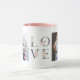 Vackra vattenfärgblommor i rosa med fetstilt grått "KÄRLEK" brev, 4 fotoemel mugg.