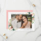 Meddela ditt kommande bröllop med vår snyggt, spara datumfotokorten med elegant. Datumfotokortet innehåller ditt favoritfoto med förlovningen som är inramad med vita och vattenfärgblommor och lush grönt lövs. Anpassa genom att lägga till information om namn, bröllop, stad och stat i bröllop och inbjudan. Designad för samordning med vår Blommigt bröllop samling.