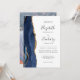 Den moderna bröllopsinbjudan från elegantens lämnat kant har en marin blå vattenfärgsagat gräns som trimmas med faux guld glitter. Med anpassadet kombineras grått-handskrift, tryckplåt och kursivt typsnitt på vit bakgrund. Byt enkelt ut exempelbilden på baksidan mot ett eget lodrät-foto.