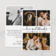 Elegant, ett minimalistiskt handsmyckat Bröllop-foto-tackkort. Snyggt bröllop tackar dig för att du har en kortmall med tre foto på framsidan och ett foto på baksidan. Med texten "Kärlek och tack" i ett snabbt och välskrivet typsnitt för typografi i svart på vit bakgrund. Anpassa det anpassade namnet och tack för meddelandet. Om du föredrar att skicka anteckningen tar du bara bort exempeltexten för att få mer utrymme. Kontakta mig om du behöver hjälp eller matcha objekt!