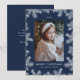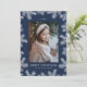 helgdag av elegant med lodräts foto inramat av vita gräs-ben med marin bakgrund. Anpassa helgdag-kortet i gräs med anpassningsbar hälsning, året och din familj namn. Kortet återgår till visning av anpassningsbarnas meddelande med vit text.