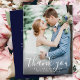 Foto för elegant Script Modern Navy Blue Bröllop Tack Kort
