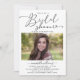 Modern, enkel Möhippa Fotoinbjudan. Firar blivande brudar med dessa moderna inbjudningar med ett enda foto av bruden att vara, typografiskriptet "'möhippa'" och party detaljer i blockversaler på vit bakgrund.