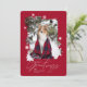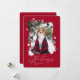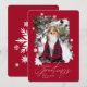 Snö faller och julen ringer! Märk julhelgens magi med vårt unika och festliga snöflingor-fotokort på vintern. Utformningen visar "Säsongshälsningar" i vitt i elegantens kalligrafi och textparsning. Anpassa till namn och år. Den omvända sidan har en fin röd bakgrund där fotot upprepas i ett vackert snöflinga ram med snöflingor-spridare runt. Snygg julkortsdesign som skickar kärlek till vänner och familj den här julhelgen.
