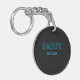 Den här moderna elegantens enkla nyckelkedjedesign har fet typografiskript " DADDY, EST 202X" med azure-bokstäver på svart. Baksidan har ett pappor och pojke-foto. Perfekt till fars dag, födelsedag och annat. Underbara presentidéer för far, farfar, make och mer. Ladda upp ditt favoritfoto och lägg till din egen text.