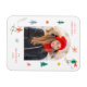 Festiv magnet med helgdag som innehåller ditt bågfoto omgivet av färgstarka skidor, stjärnor och gräs träd. Anpassa fotojulmagneten med anpassningsbarna hälsning (visas för närvarande som "God jul"), familjen namn och året med röd skrift.