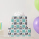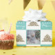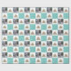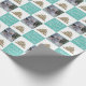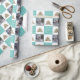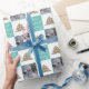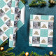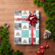 Festiv turkos och vit typografi Julgran-familjens fotomslagning Papper. Turkos och vit bakgrund med snöflingor och ett enkelt Julgran. White Merry, Lycklig, Jolly typography. Anpassa designen med fotot - infoga den i mallen och göra din egen personliga omslutning papper.
