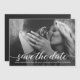 Anpassa med eget foto på vykortet "Spara datum" bröllop. Meddela din förlovning och anpassa texten med dina kommande uppgifter om bröllop. Grattisar! Ett svart överlägg bakom texten gör det lättare att läsa med ditt fotoval.