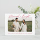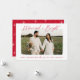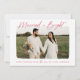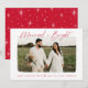 Firar din första jul som gift par med vårt gift och ljusa helgdag-fotokort! Kortet har "Gift och ljus" i ett rött, modernt, handskript. Ditt foto från vågrät bröllop visas med ett vitt, grovt kant gräns. Anpassa kortets framsida genom att lägga till en anpassningsbar hälsning med namn som visas nedan. Kortet återgår till visning med röd bakgrund med en vit mousserande stjärna mönster.