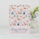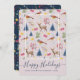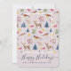 Watercolor hjort, bird, träd och Grey mönster, ditt favoritfoto, skript "Peace On Earth" som täcker ett dammigt helgdag-kort för rosa.