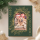 ett omhuldat minne med det här lyxiga julkortet med ditt favoritfoto på helgdag. En fantastisk bakgrund på grönten av rik är vackert utformad med en imponerande, guld-folie-inspirerad blommigt och botaniska illustrationer, som leder öga till din anpassningsbar bild inom ett graverande bålverk i ram. Konstruktionen frammanar helgdagarnas värme och , skapar det perfekten att skicka det varmaste önskemål som är skrivet åt dig på baksidan.