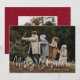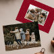 Modern helgdag-fotokort med vågräts foto med "God jul" i ett vitt handskript. Anpassa fotojulkortet med din familj namn och året. Det enda fotokortet återgår till visning av ett ytterligare foto och en burgundisk bakgrund med subtila vita helgdag.