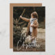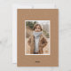 Modern helgdag-fotokort med lodräts foto med "God jul" i ett vitt handskript. Anpassa fotojulkortet med din familj namn och året. Det enda fotokortet återgår till visningen med ett ytterligare foto och en karamellbrun bakgrund med subtila vita helgdag.
