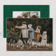Modern helgdag-fotokort med vågräts foto med "God jul" i ett vitt handskript. Anpassa fotojulkortet med din familj namn och året. Det enda fotokortet återgår till visning av ytterligare ett foto och en grönt med subtila vita helgdag.